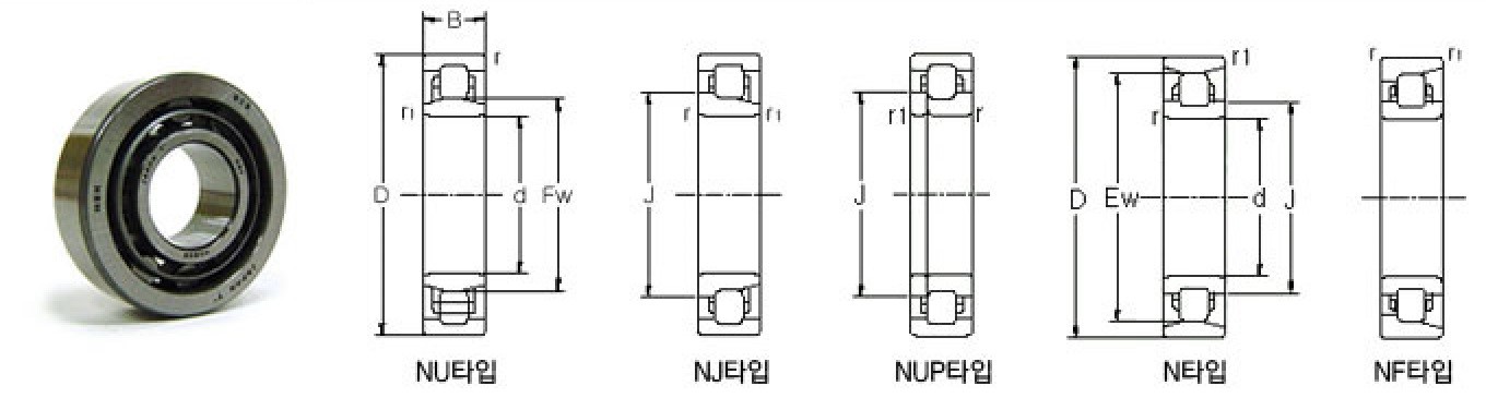 | NUP 형 | d | D | B | r (최소) |